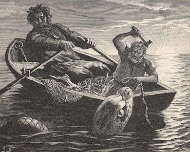 mit dem Riesen Hymir beim Angeln