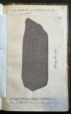 In der Schachtel mit der Nummer 7 findet sich in Thorsens Nachlass außerdem noch diese Notiz von ihm selbst, die er auf den 25.Juni.1838 datiert hat. E gibt darauf die Zeichnung von Laurids Christensen Bording und seine Überlegungen zu dem Stein / der Inschrift wieder.