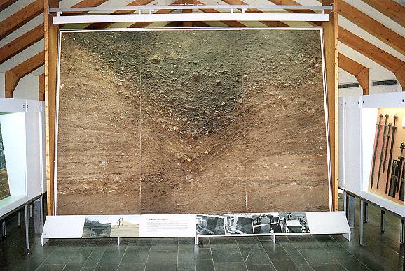 Lackprofil des Spitzgrabens vor dem Kograben (im Haithabu Museum)