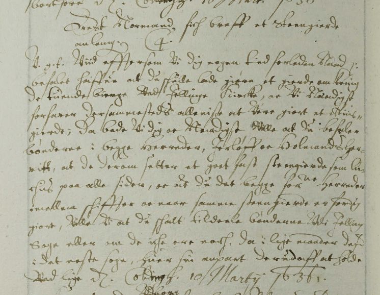 Der Originaltext dieses Briefes lautet auszugsweise: "Wor gunst tillforn. Wy bede Eder och wille, at I Eders mueligste flid ahnwender allewegne wdj Eders stigt att opsøge och antegne alle slags antiquiteter och documenter effter medfølgende fortegnelsis indhold, och att I saadanne med flid lader optegne och engang inden Paaske førstkommendis wdj wortt cantzelie lader indleffuere. Dermed skie wor willghe. Befalendis Eder Gud. Skreffuitt paa wortt [slott] Kiøbenhaffn, den 10. augusti anno 1622. Vnder vort signett.Christian."