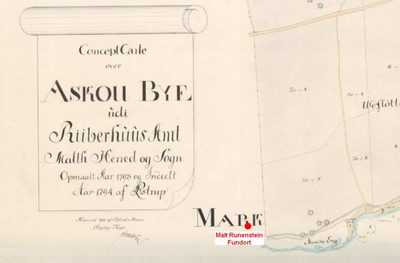 Die von Norden kommenden Menschen konnten somit die Inschrift des Malt-Steins sehen und lesen, bevor sie gleich danach die Kongeå überquerten. Hier befand sich vermutlich eine Brücke oder Flussfurt. 300 Meter weiter östlich wurden brückenähnliche Fundamente in Form von großen Steinen und eingerammten Pfählen gefunden.
