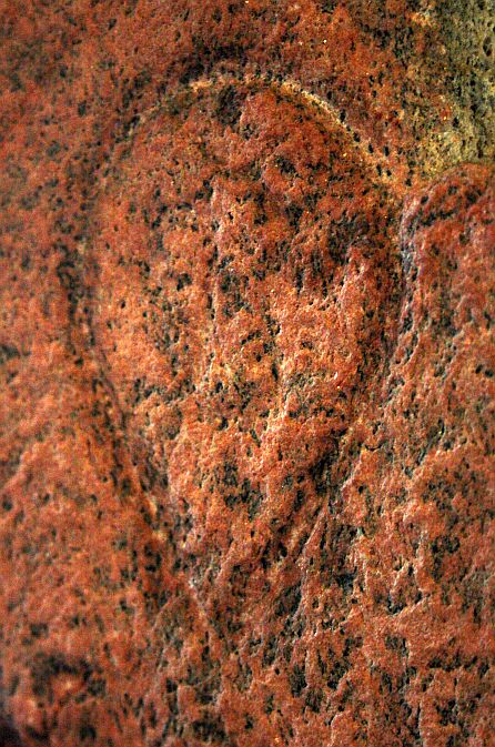 die Ritzung eines kleinen stilisierten Menschengesichtes, das eine