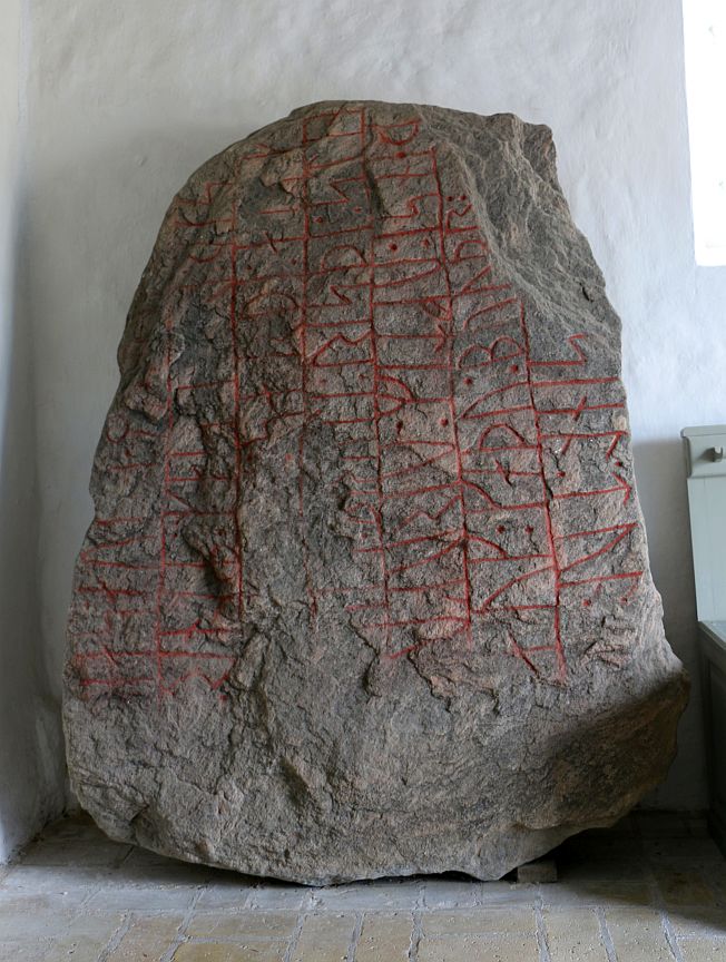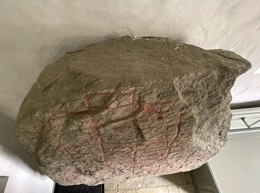 So wie der Stein in der Mauer lag, waren die Runen teilweise erkennbar. Im Jahre 1869 wurde er herausgenommen und in einer Ecke des Waffenhauses aufgestellt, wo er sich noch heute befindet. Die Kirche ist normalerweise abgeschlossen.