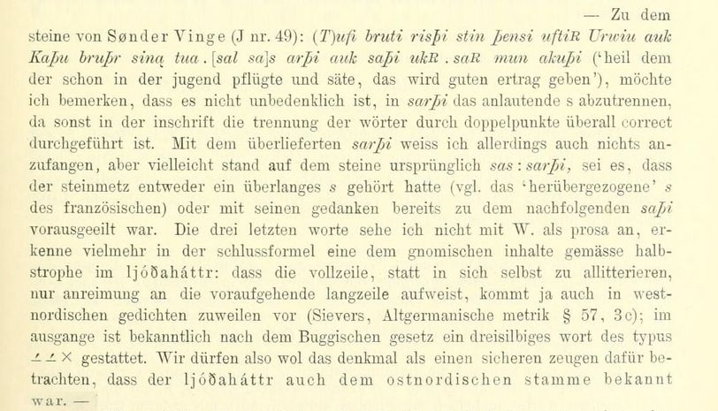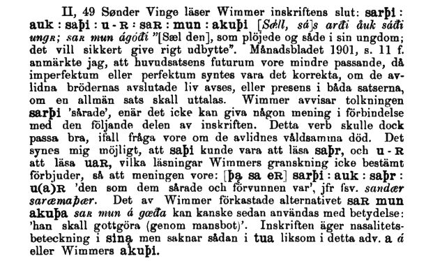 ab der S. 131 Kritik an der Lesung von Wimmers "s sarpi" geübt und gibt einen neuen Deutungsvorschlag für das Inschriftende.